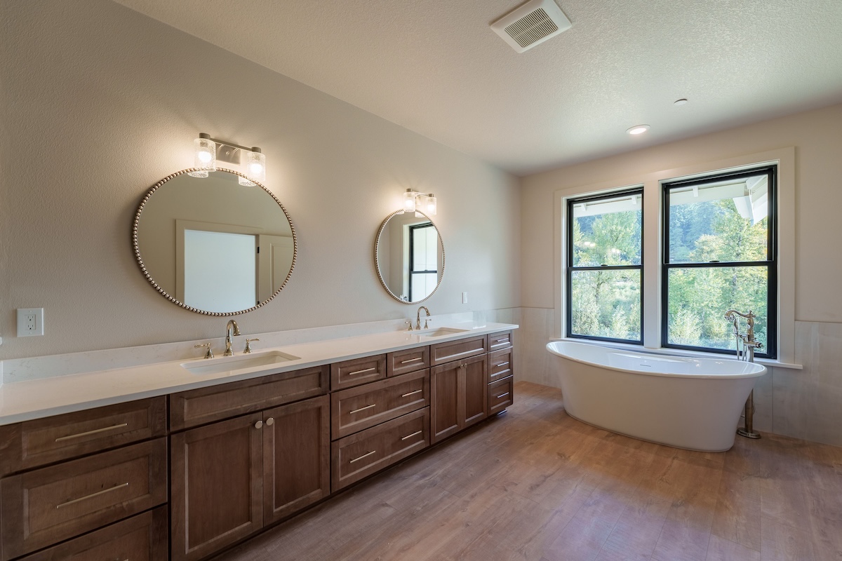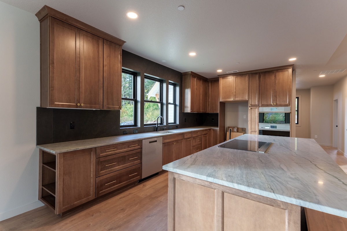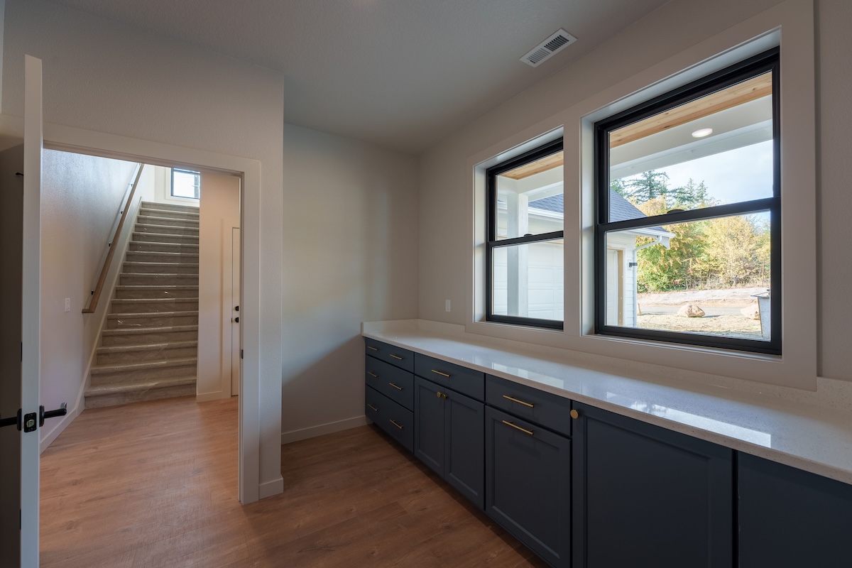 Nestled in a sunny meadow surrounded by forest in the Oregon City countryside, the home’s warm and natural finish palette creates a natural connection to the land around it. Highlights include a beautifully designed fireplace with hearth, an expansive back deck, hand-selected granite countertops, and warm biscotti custom cabinetry throughout. Custom-built closets by our finish carpenter add thoughtful, personalized storage for everyday living.