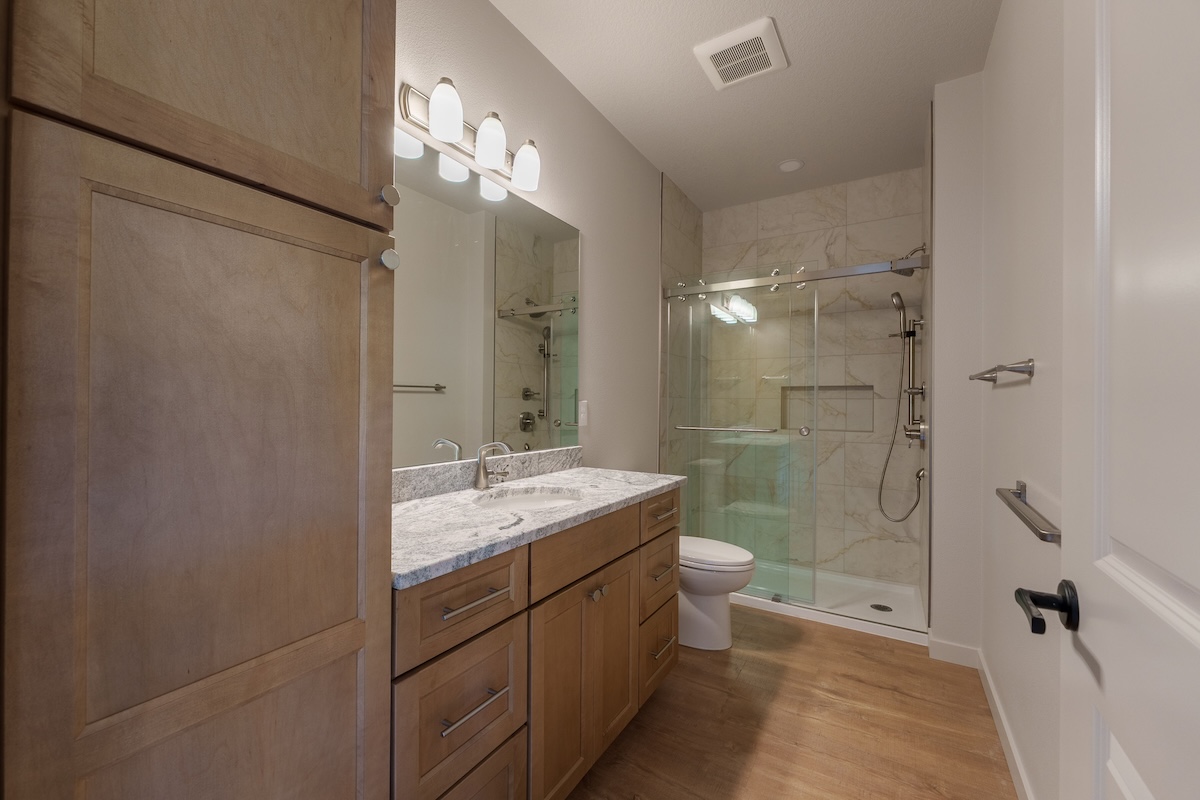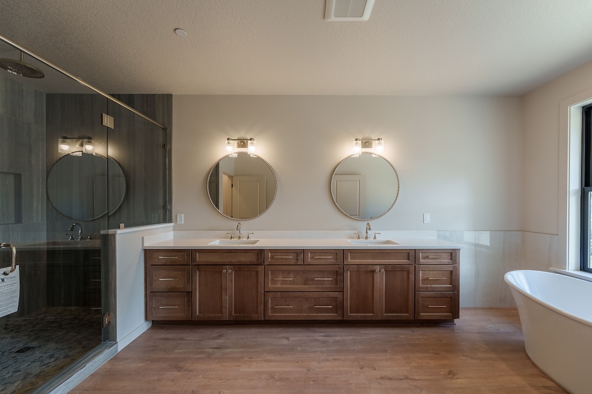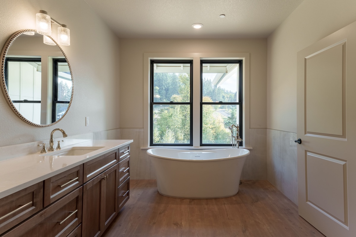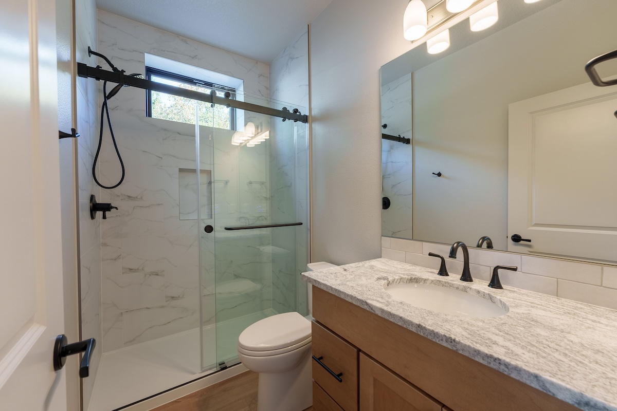 Nestled in a sunny meadow surrounded by forest in the Oregon City countryside, the home’s warm and natural finish palette creates a natural connection to the land around it. Highlights include a beautifully designed fireplace with hearth, an expansive back deck, hand-selected granite countertops, and warm biscotti custom cabinetry throughout. Custom-built closets by our finish carpenter add thoughtful, personalized storage for everyday living.