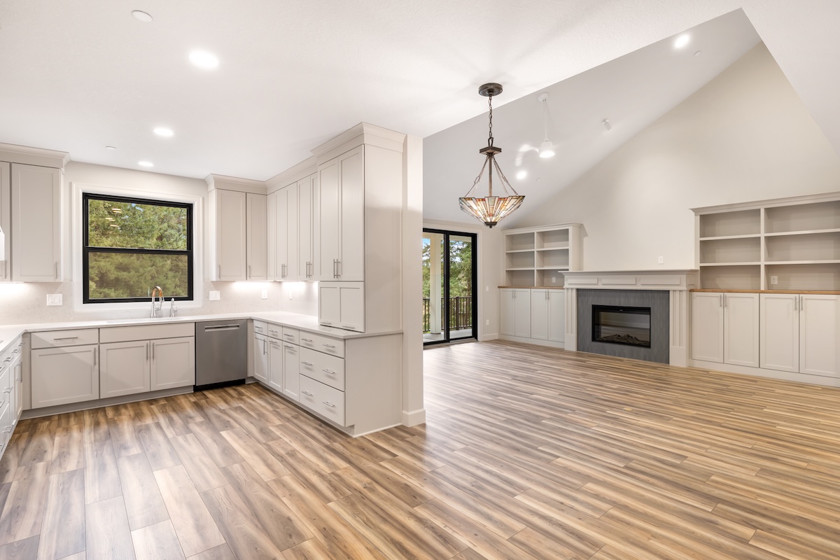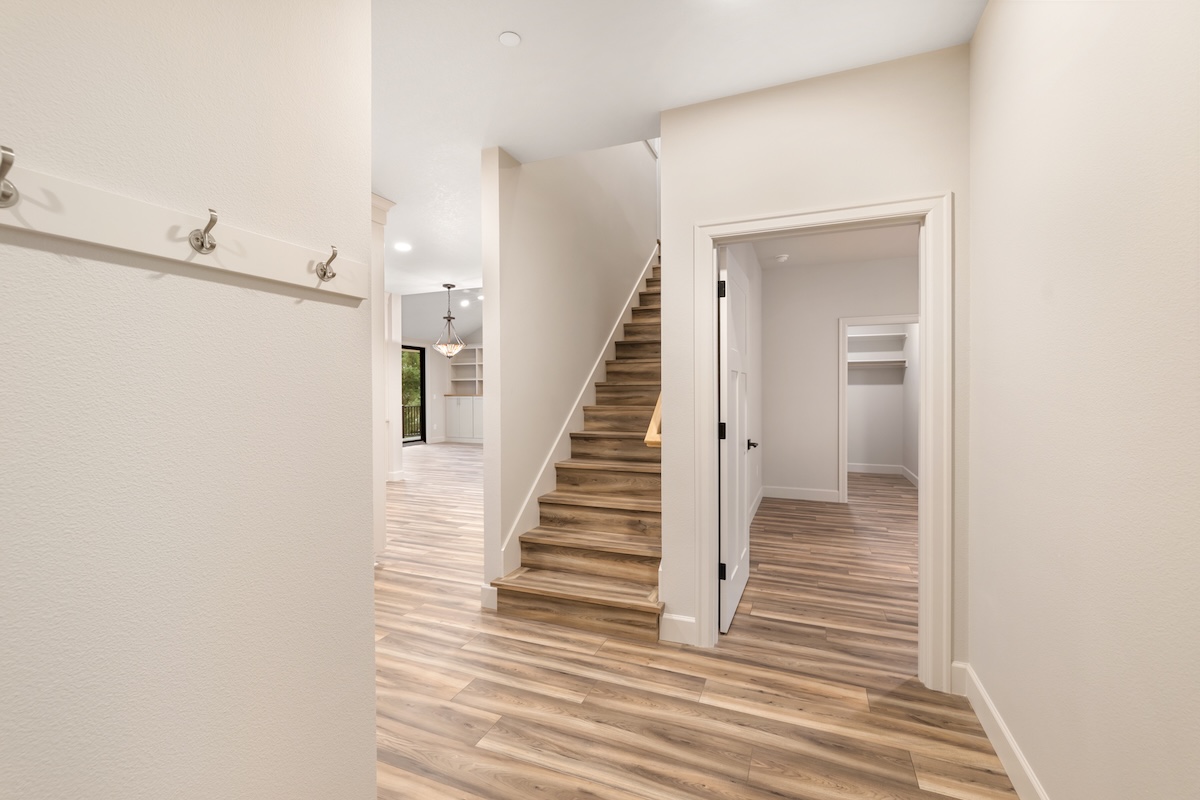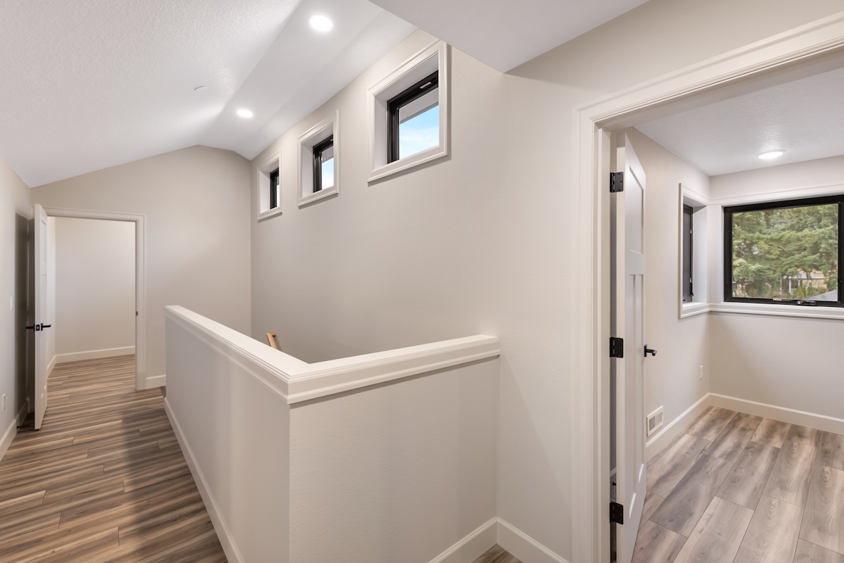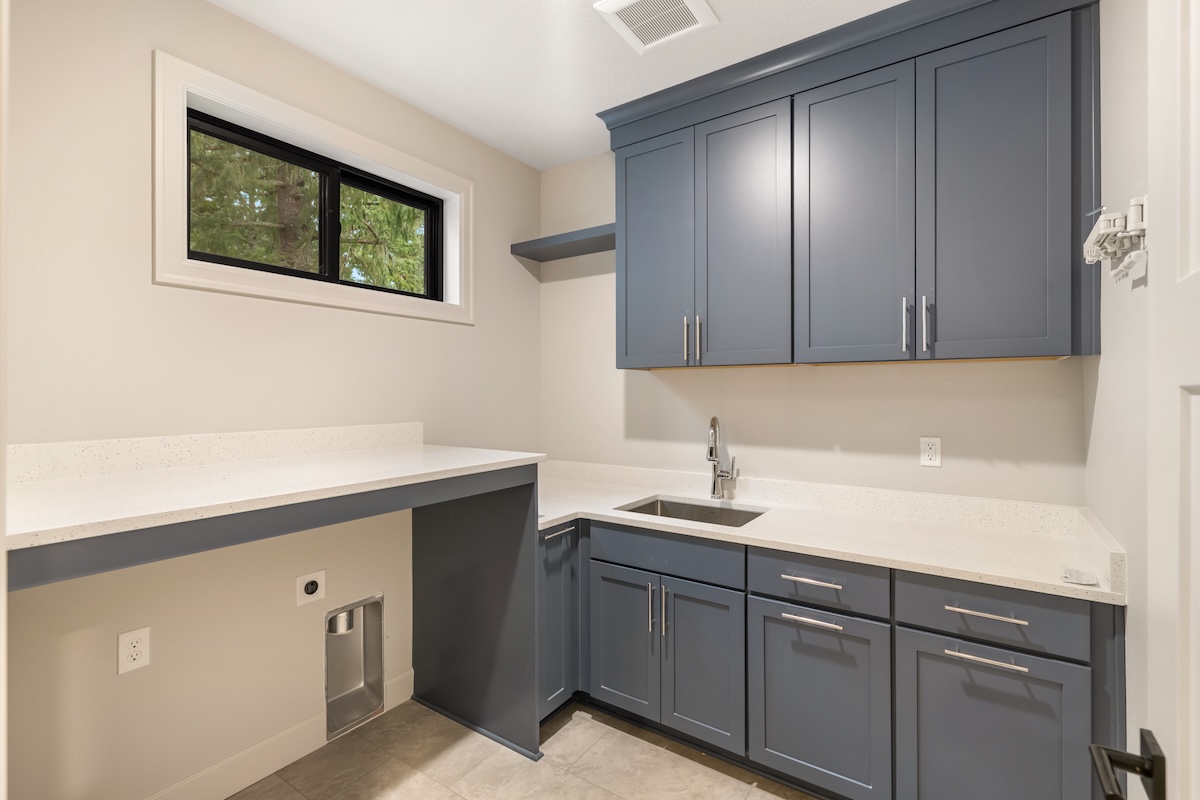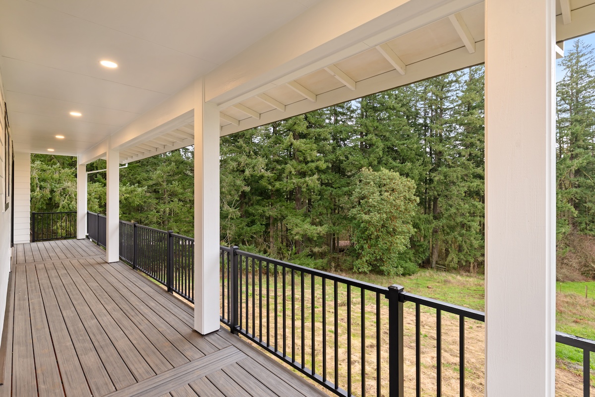 A soft, warm interior palette keeps the home bright and inviting during the Pacific Northwest’s seasonal weather while complementing the surrounding natural landscape. Thoughtfully designed for long-term living, this custom home blends modern comfort, accessibility, and flexible living spaces ideal for growing families.