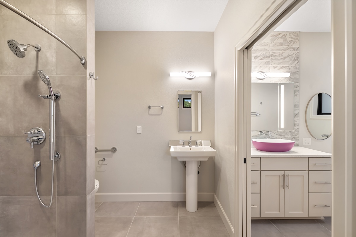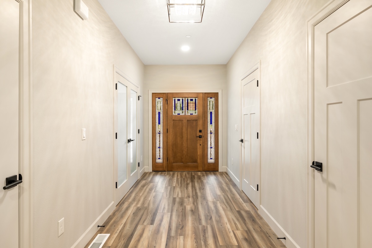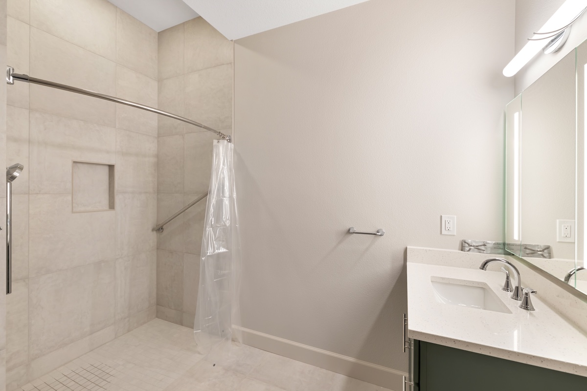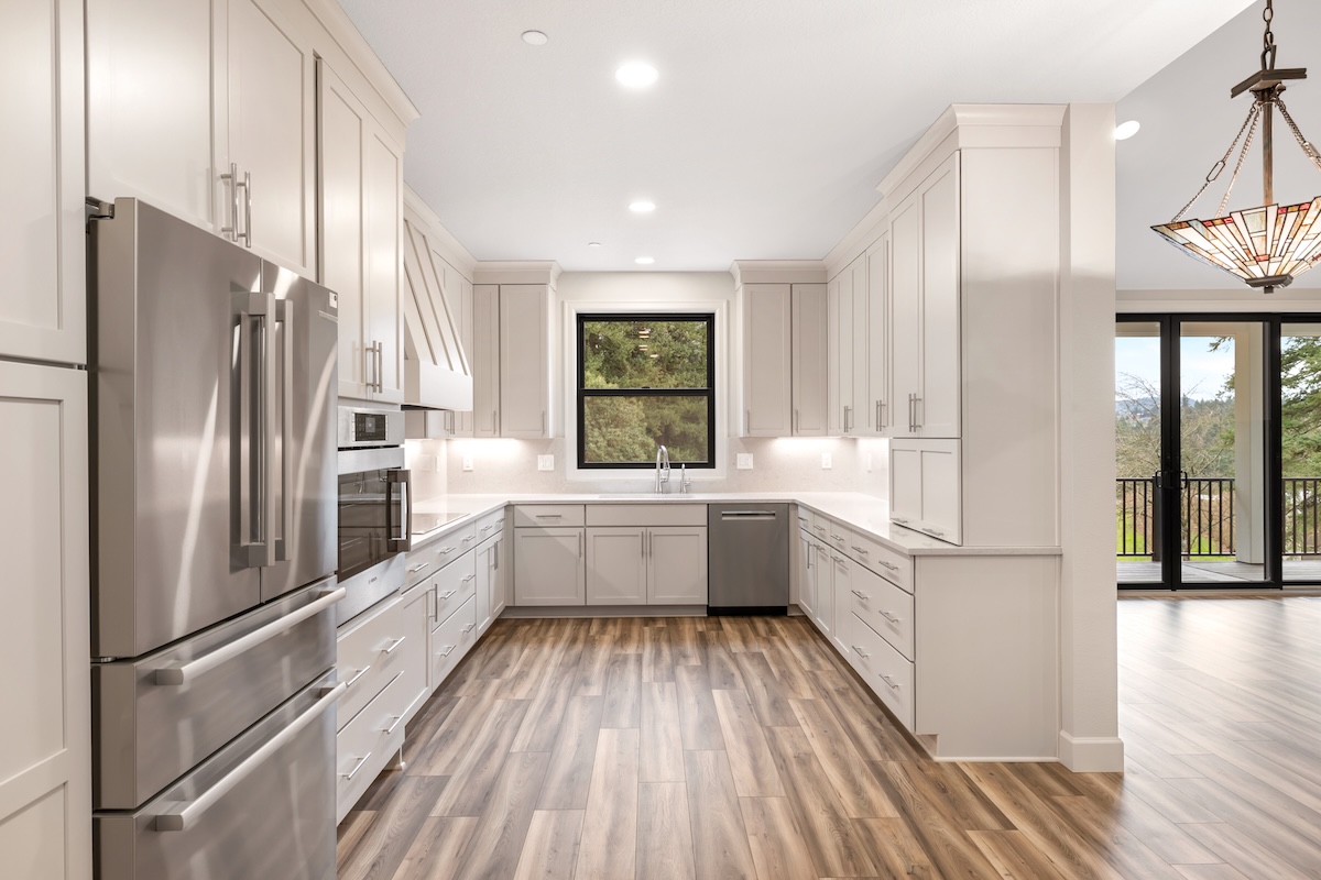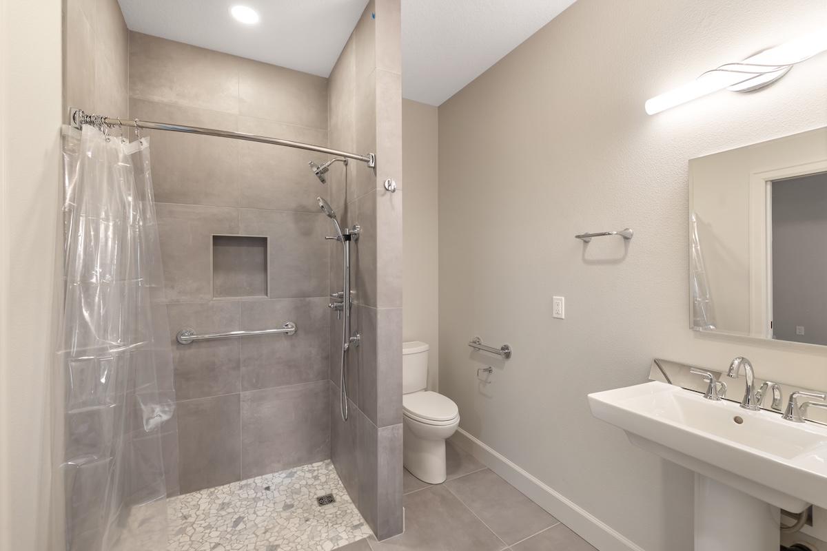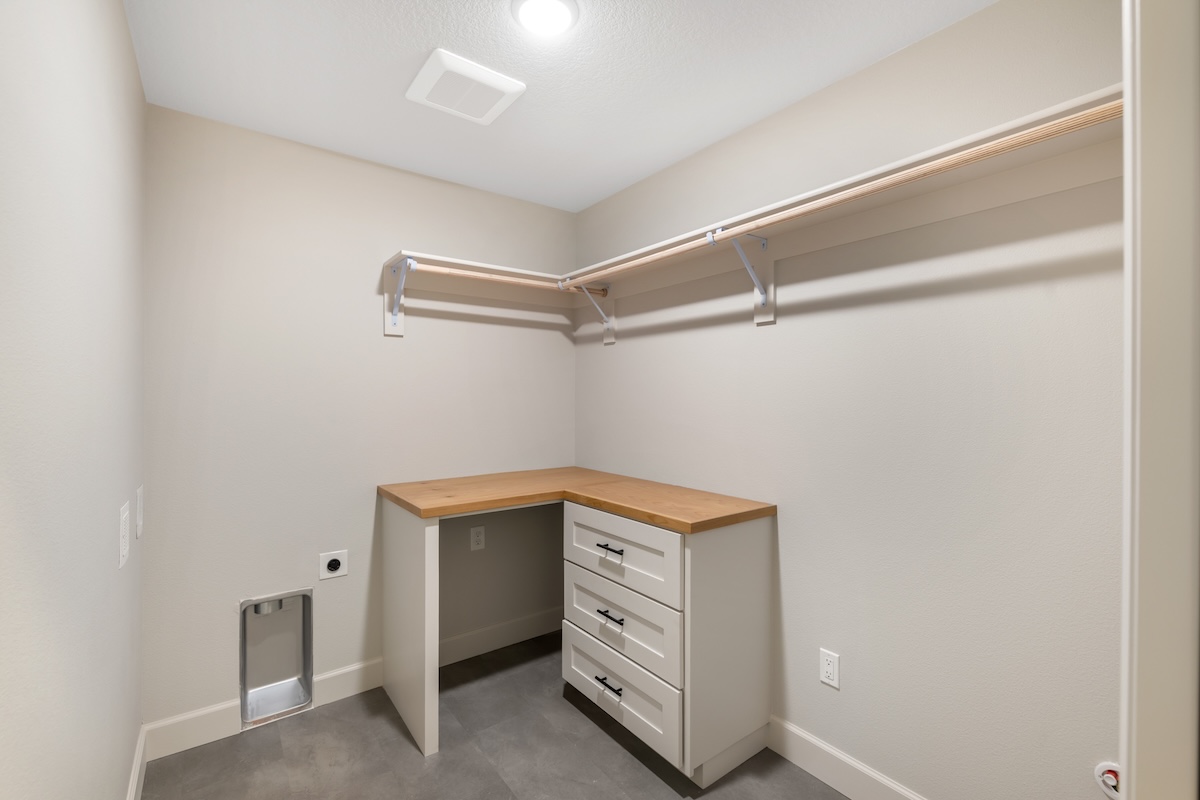 A soft, warm interior palette keeps the home bright and inviting during the Pacific Northwest’s seasonal weather while complementing the surrounding natural landscape. Thoughtfully designed for long-term living, this custom home blends modern comfort, accessibility, and flexible living spaces ideal for growing families.